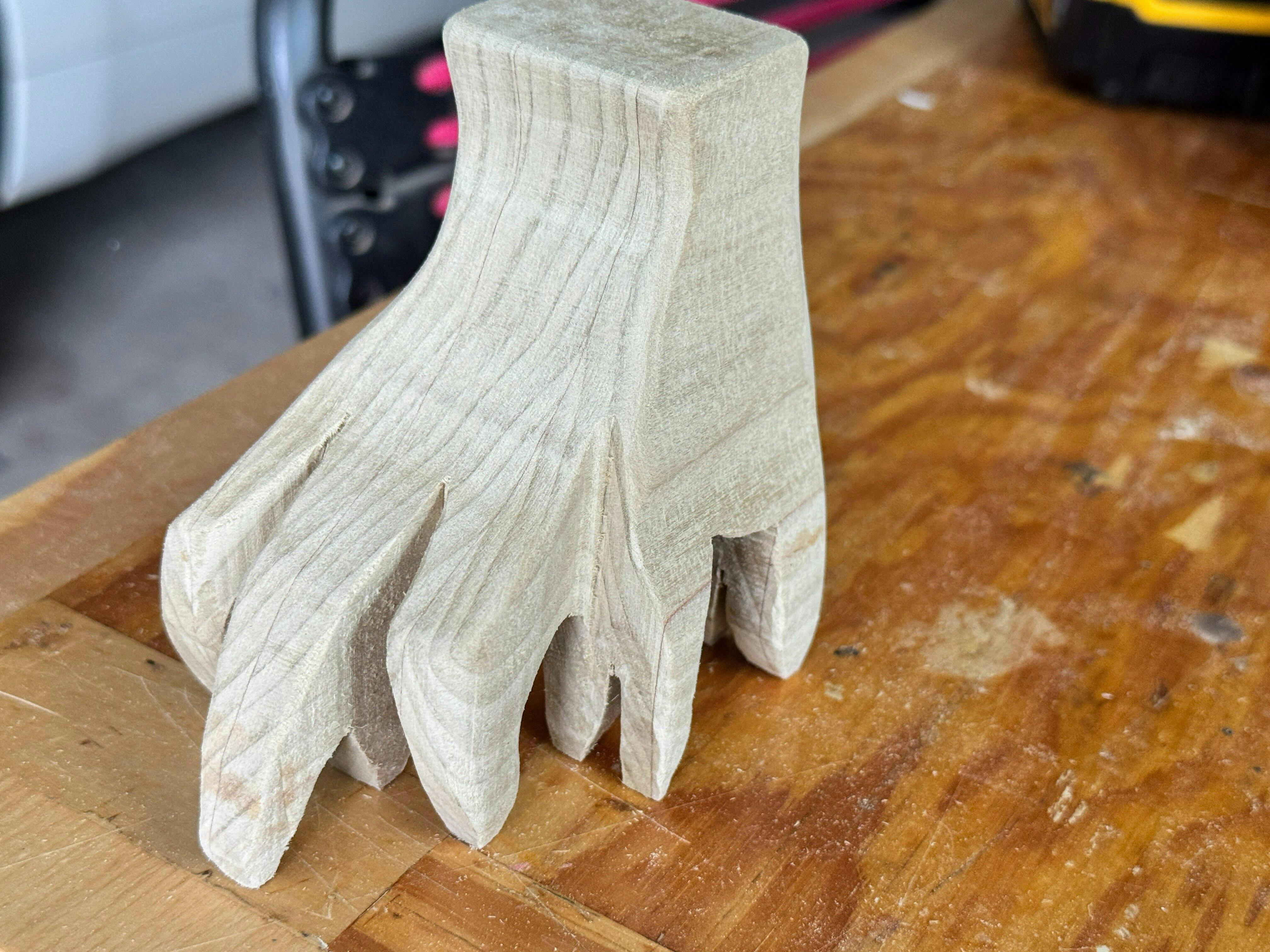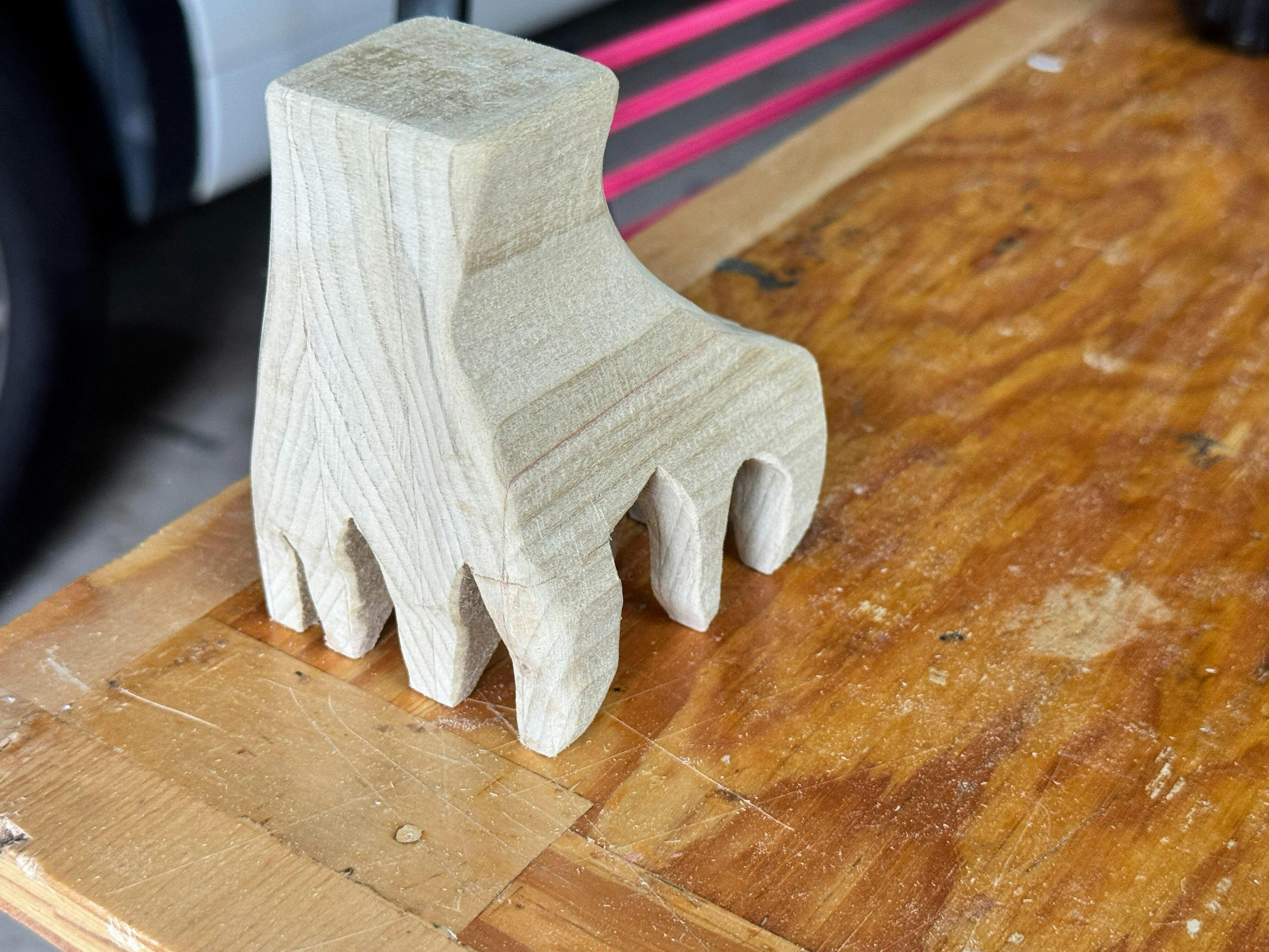 Pas de blabla, pas de plainte, juste une main en bois, prête à bosser.